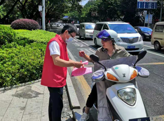 八月末,天氣炎熱,市政集團的志愿者們身著紅馬甲,不畏臟、不怕累,各司其職,分時段分批次在蓮新社區(qū)范圍內(nèi)開展創(chuàng)城活動,其中清潔崗的志愿者們帶著夾子、掃帚、垃圾袋等清掃工具,對街道路面的紙屑、塑料袋、煙頭等生活垃圾進行清掃,將亂停亂放的自行車整齊的排列在停車位上,使得街道整潔一新。宣傳崗的志愿者們走進商鋪,發(fā)放文明宣傳標語,動員商鋪店主一起,注意門前三包,在平時營業(yè)工作中,遇到不文明行為時,進行及時規(guī)勸,讓市民自覺遵守,規(guī)范自身行為,積極踐行“共創(chuàng)共享”的創(chuàng)城理念,共同為創(chuàng)建文明城市出一份力。交通崗的志愿者們通過積極引導(dǎo)道路交通,向過往行人科普創(chuàng)城溫馨小知識,加強城市文明建設(shè)。